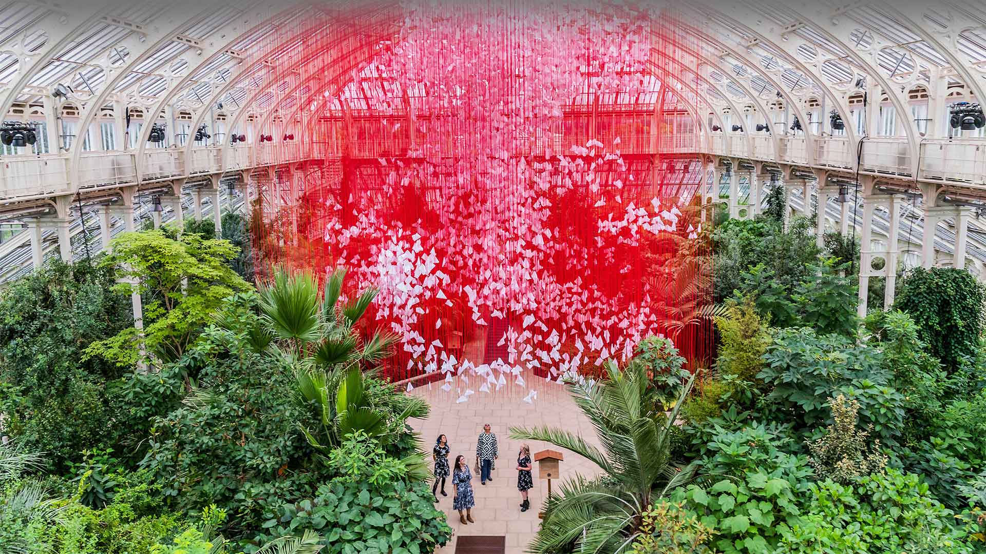 'One Thousand Springs' haiku art installation by Chiharu Shiota, Kew Royal Botanic Gardens, London, 英格兰 (© Guy Bell/Alamy Live News)